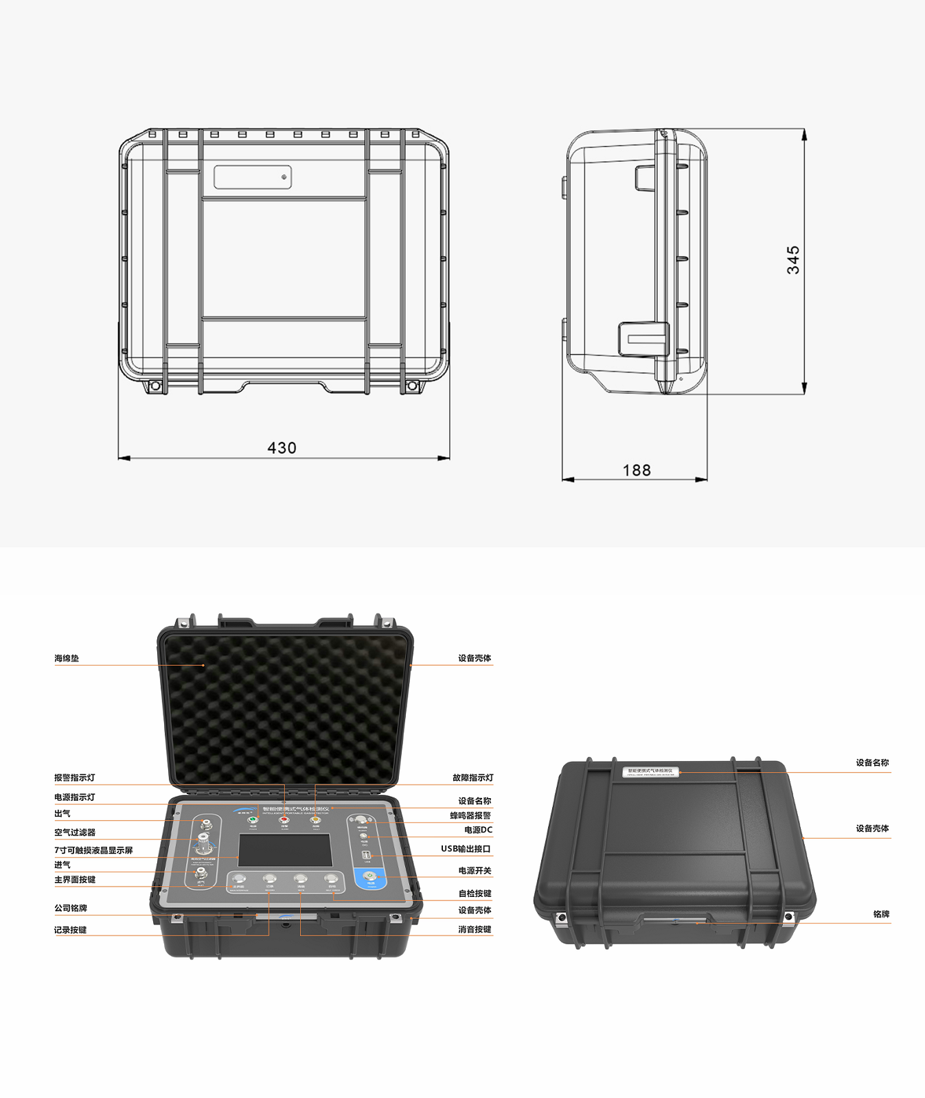 ☆ 七寸彩色高清觸摸液晶顯示屏,可顯示檢測數(shù)據(jù)、報警信息、時間、溫度、存儲、電量、充電狀態(tài)等信息,對設(shè)備進(jìn)行調(diào)節(jié)設(shè)置。